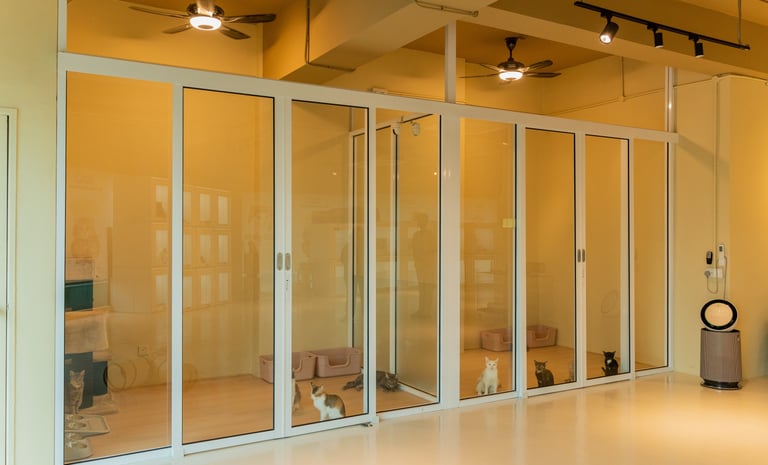 The gold standard of cat boarding in Kuala Lumpur. This massive suite allows your cats to roam freely in a large, dedicated space.